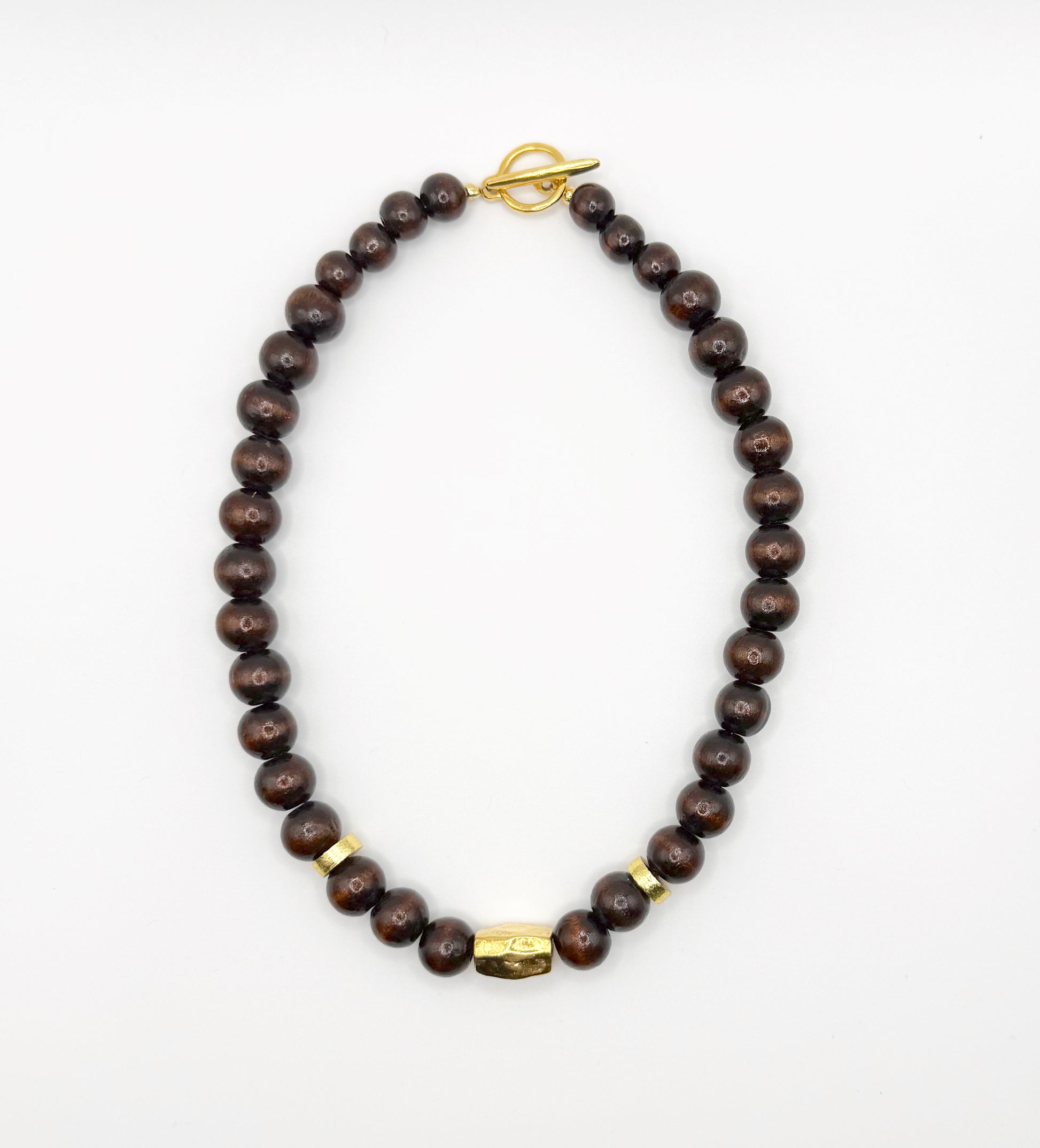 Brown wooden beads, beads brass 12k antique gold plating